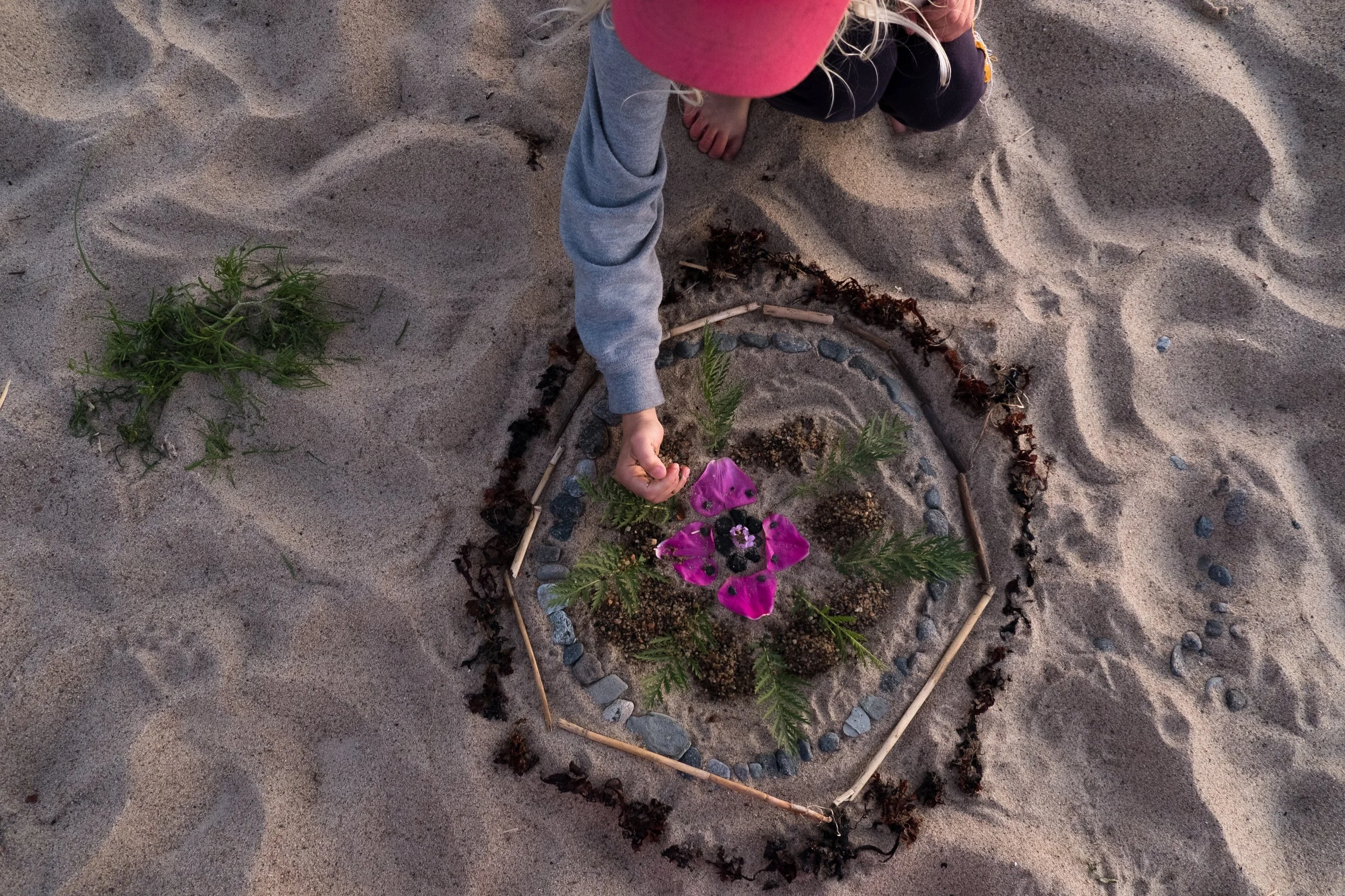 Mandalas are not meant to be permanent. When you feel your creation has served its purpose, return each piece with care — back to the earth, into a box, or wherever you feel it belongs. Take as much time in this gentle dismantling as you did in building your mandala. Notice how releasing it feels, and honor the process as part of the rest and play you cultivated during its creation.